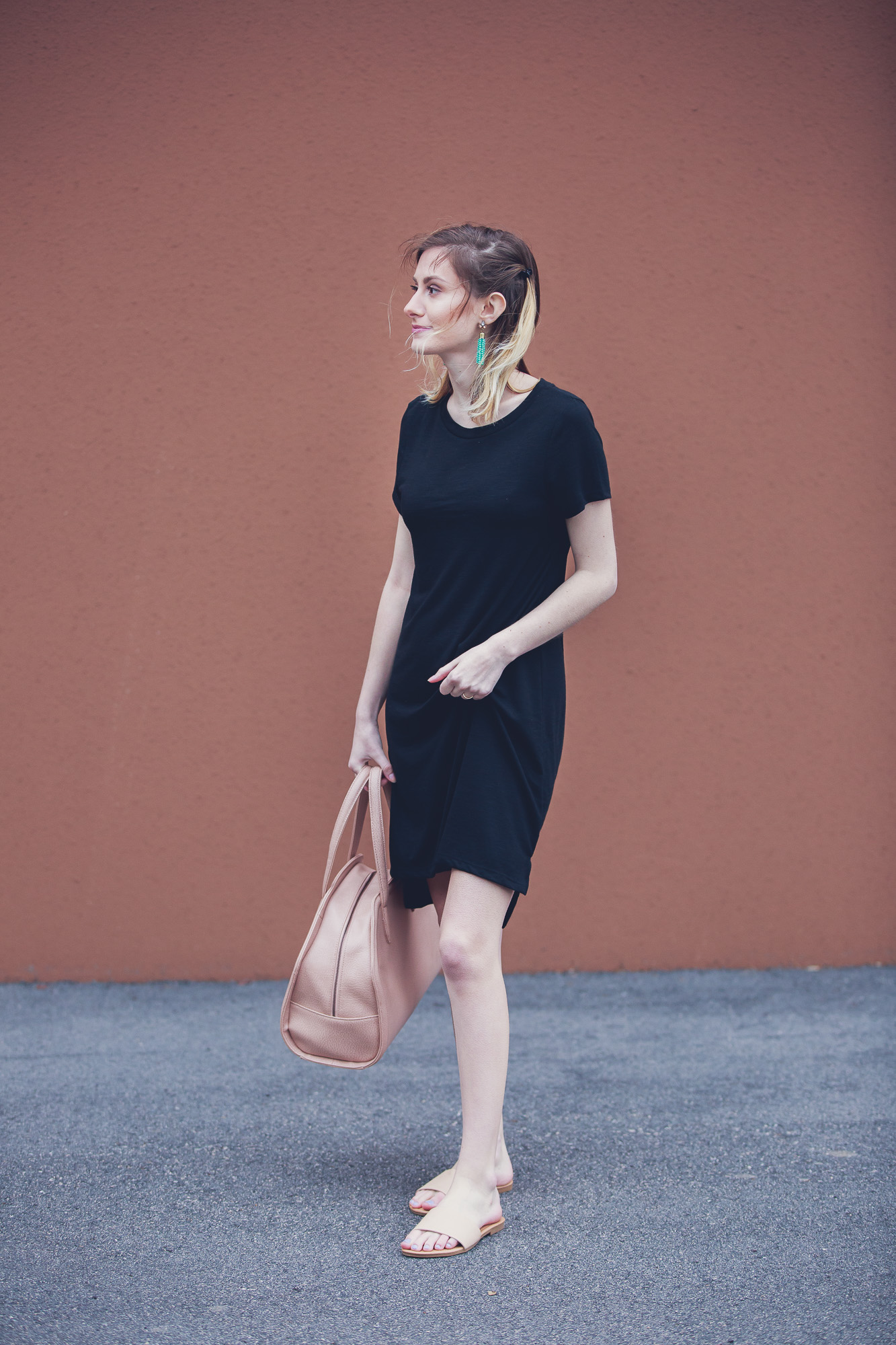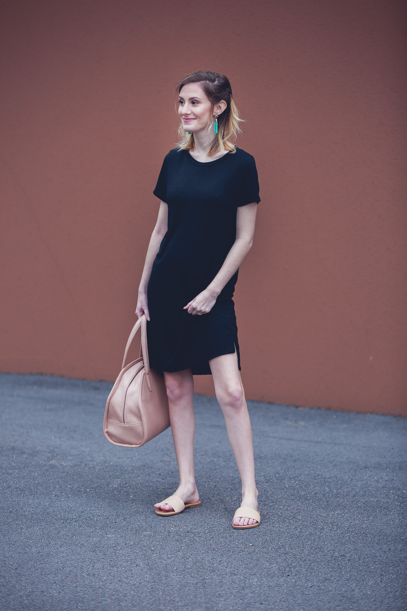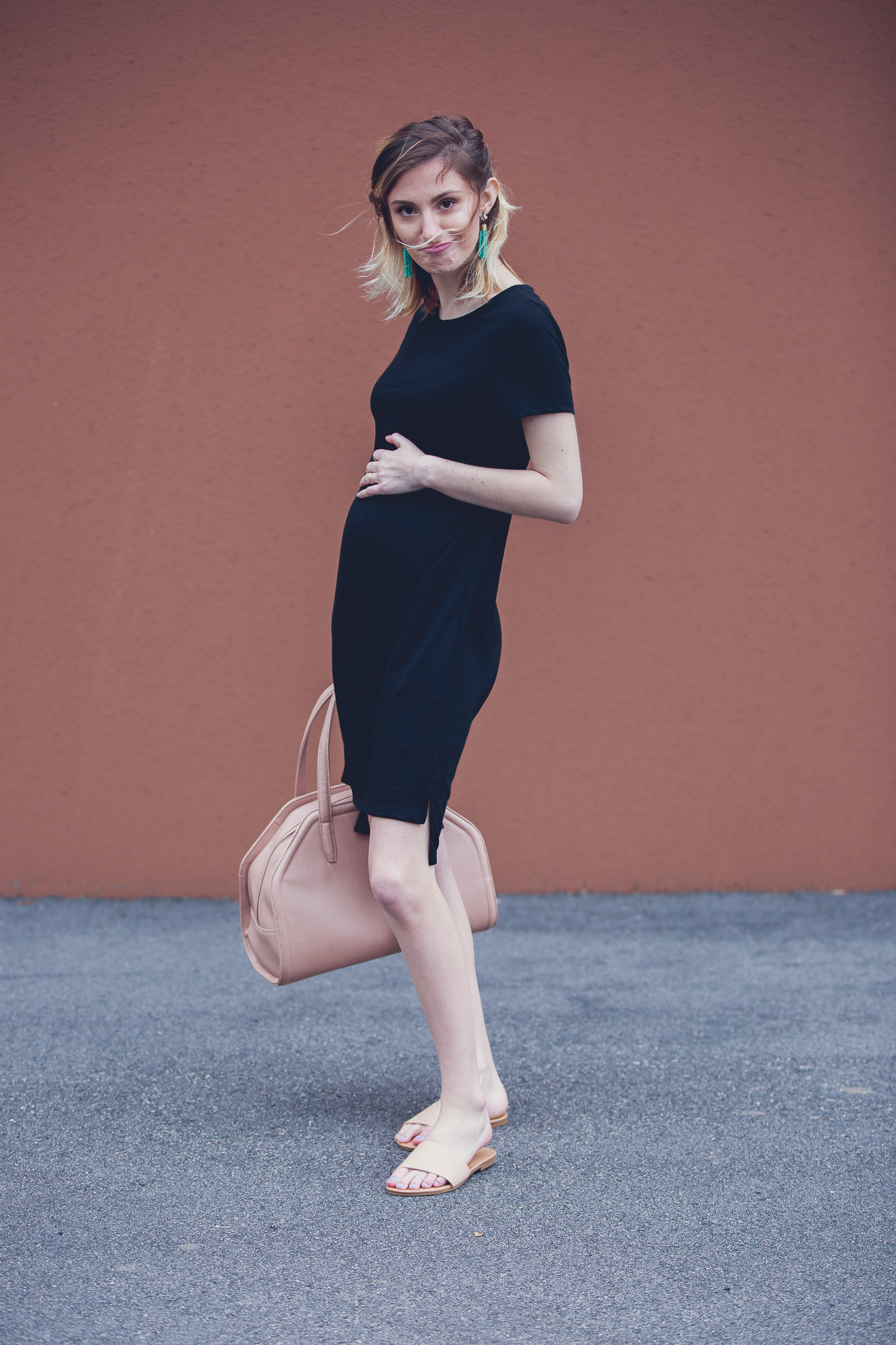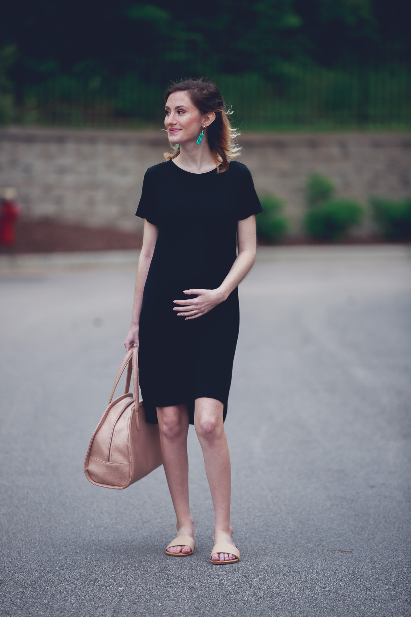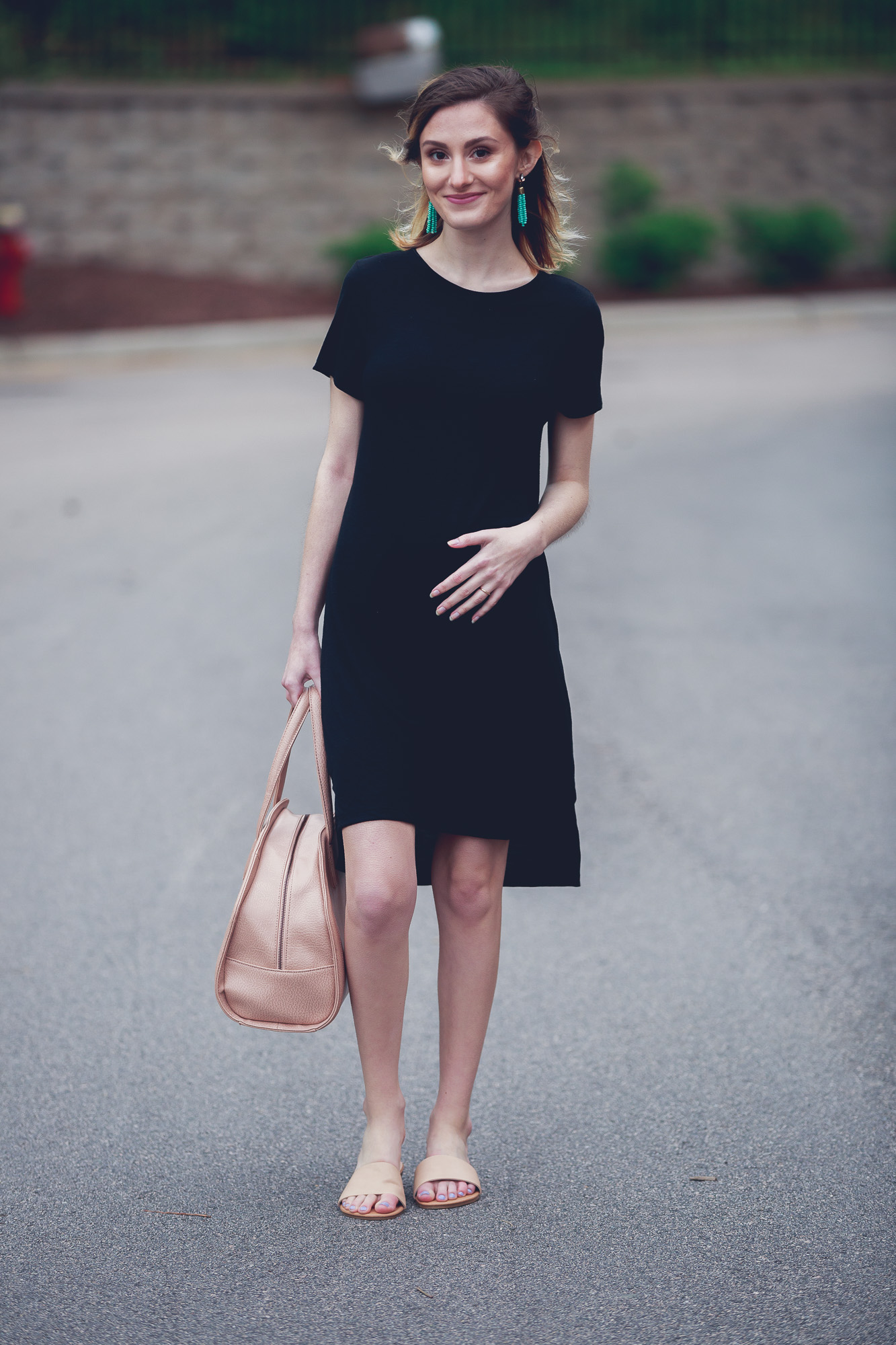As I mentioned in a previous post, getting dressed lately is so difficult so I have been living in dresses. With the breast growth and bellow growth, some days I feel huge and like everything is unflattering on me so I was surprised by how I felt in this t-shirt dress! I put it on and remarked “I don’t look like a baby whale in this!” It was a good day. This dress is so comfortable too, it feels almost like a nightgown, I could probably sleep in this thing.