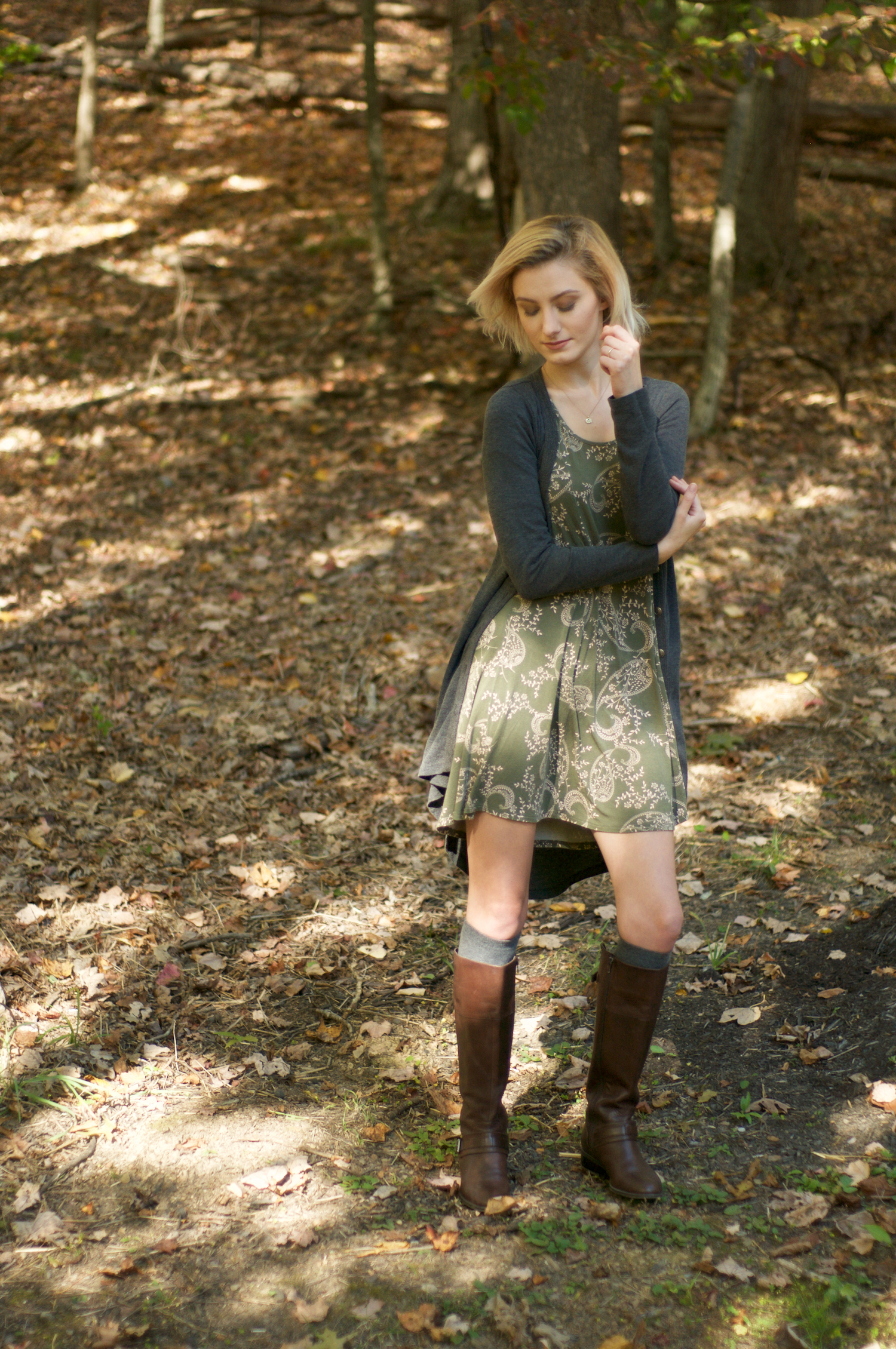 I am completely obsessed with this dress! Olive is such a great fall color and I think that it deserves as much attention as orange, red and other fall colors receive. This dress is also incredibly light weight and perfect for fall layering, (it also can come off very quickly and easily as I discovered